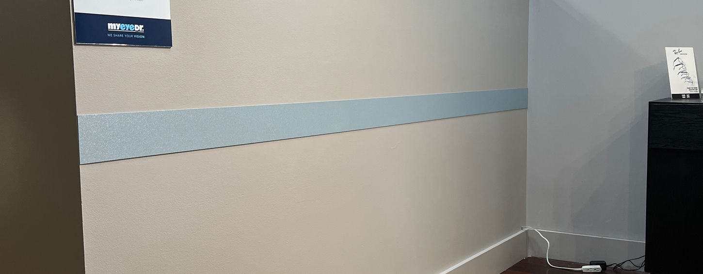 – Patched and painted scratched walls at an optical store, then applied a protective strip to prevent future damage.