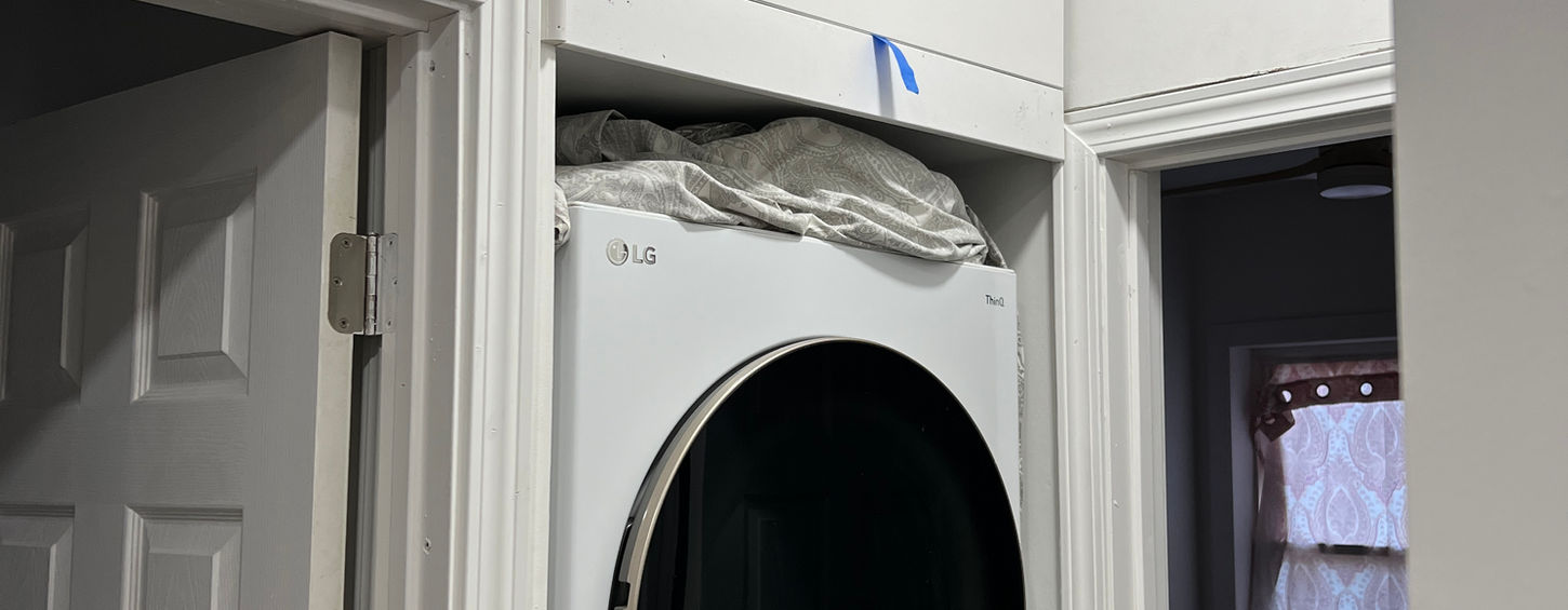 - Modified sink plumbing to eliminate gurgling noise from shared drain lines and installed a custom cabinet door above the washer.